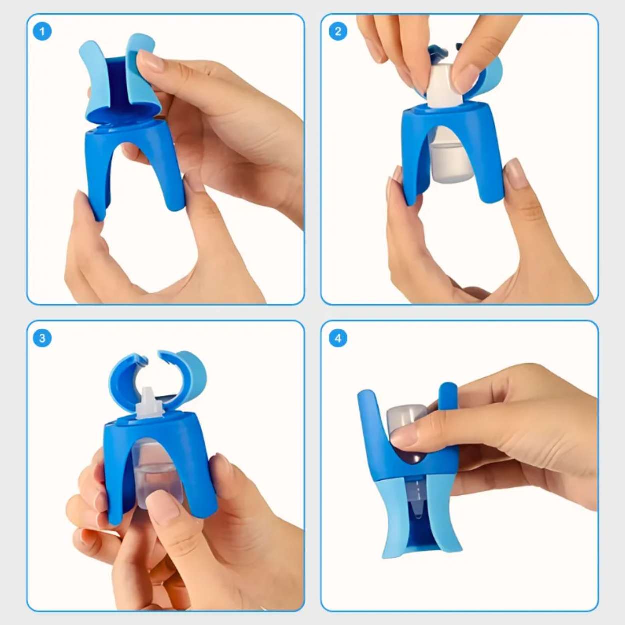 Introducing the Eye Drop Aid Dispenser, your perfect companion for hassle-free eye drop application. Designed to fit comfortably over your eye, this innovative tool ensures precise medication placement, preventing harm and infection by keeping the bottle top away from your eyes. Ideal for individuals with arthritis or those who have difficulty holding tiny bottles steady, the Eye Drop Aid Dispenser simplifies the process, making it easier and more comfortable.