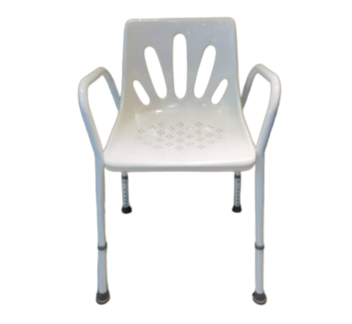 Lightweight yet sturdy, this standard aluminum shower chair offers a safe and comfortable bathing experience. Its rust-resistant frame, adjustable height, and non-slip rubber feet ensure stability and adaptability for any bathroom. Perfect for added support and convenience during showers.