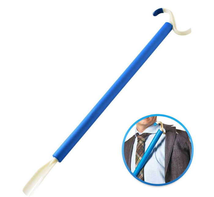 Simplify dressing with this versatile tool that combines a dressing stick and shoehorn in one. Easily pull on clothes and slip into shoes without bending or straining, making it ideal for individuals with limited mobility, flexibility, or hand strength. Lightweight, durable, and practical for everyday use.