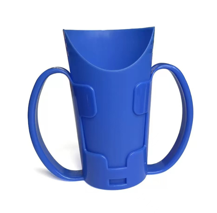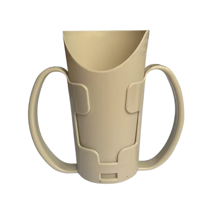 Designed for easier, more comfortable drinking, this cup features a special nose cut-out that allows users to drink without tilting their head back—ideal for those with limited neck movement or while recovering from surgery. The included holder provides a secure grip, making it easier to handle for individuals with reduced strength or coordination. Practical, lightweight, and supportive for daily use.