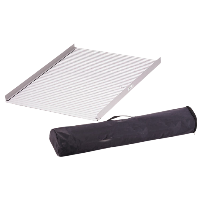 This handy transportable Roll-Up ramp gives you safe and reliable access in the face of high thresholds, steps, kerbs and other mobility obstacles. Its wide anti-slip surface is suited to most wheeled mobility aids and all kinds of weather conditions. With a lipped edge along the sides of the ramp for extra reassurance. It needs just a few seconds for assembly, simply roll the ramp out where it is needed, connect the edges, and lock into place. Comes with a durable carry bag to make transportation easier.