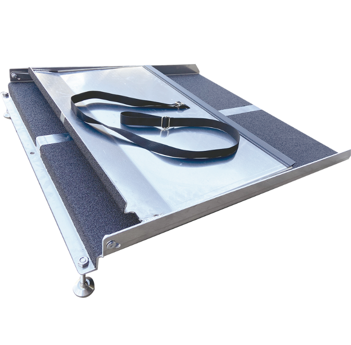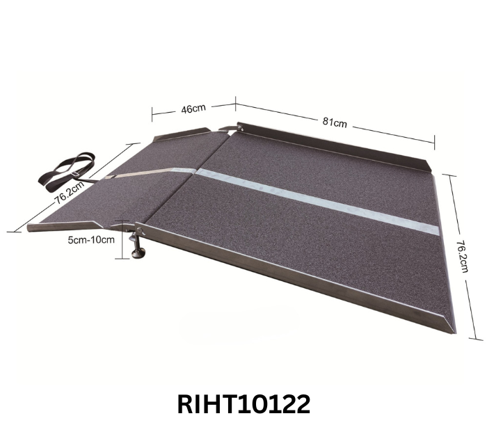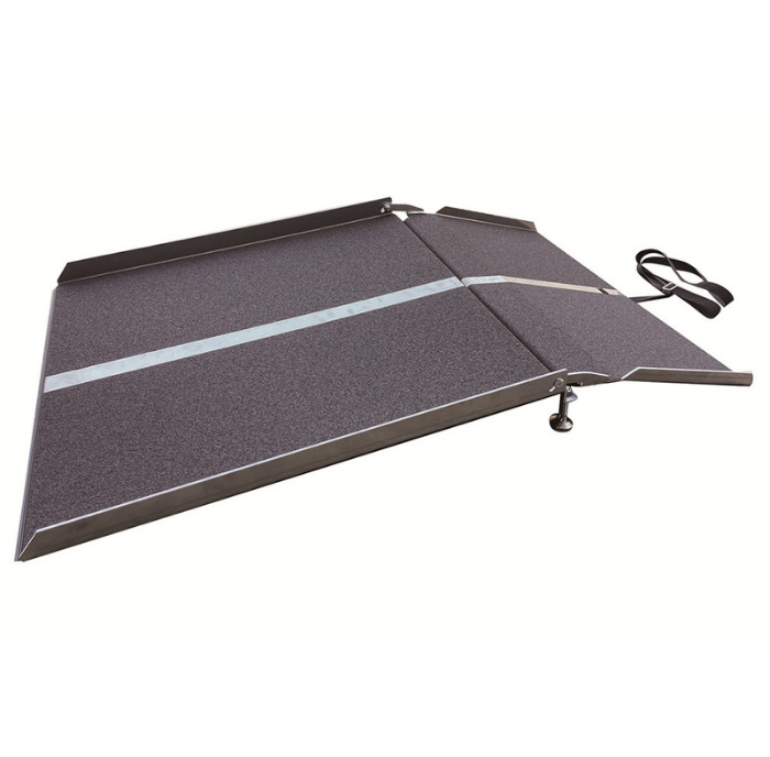 - Two part folding drive-in ramp - Allows users to easily go up and over the threshold and is provided with adjustable feet to allow you to adjust the ramp to heights up to 15cm.