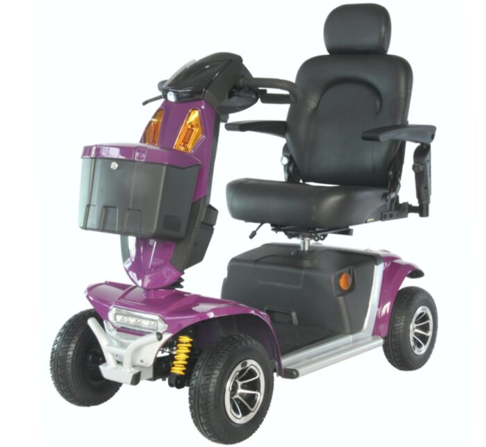 The Top Gun Blazer is the clever choice with all the latest safety features, offering a super comfortable ride with double sprung suspension as standard fitment. The stylish design includes a lockable front carry box to keep your treasures safe. Robust yet agile, this class leading scooter is backed by the quality guarantee of Top Gun Mobility’s 5 Year Warranty.